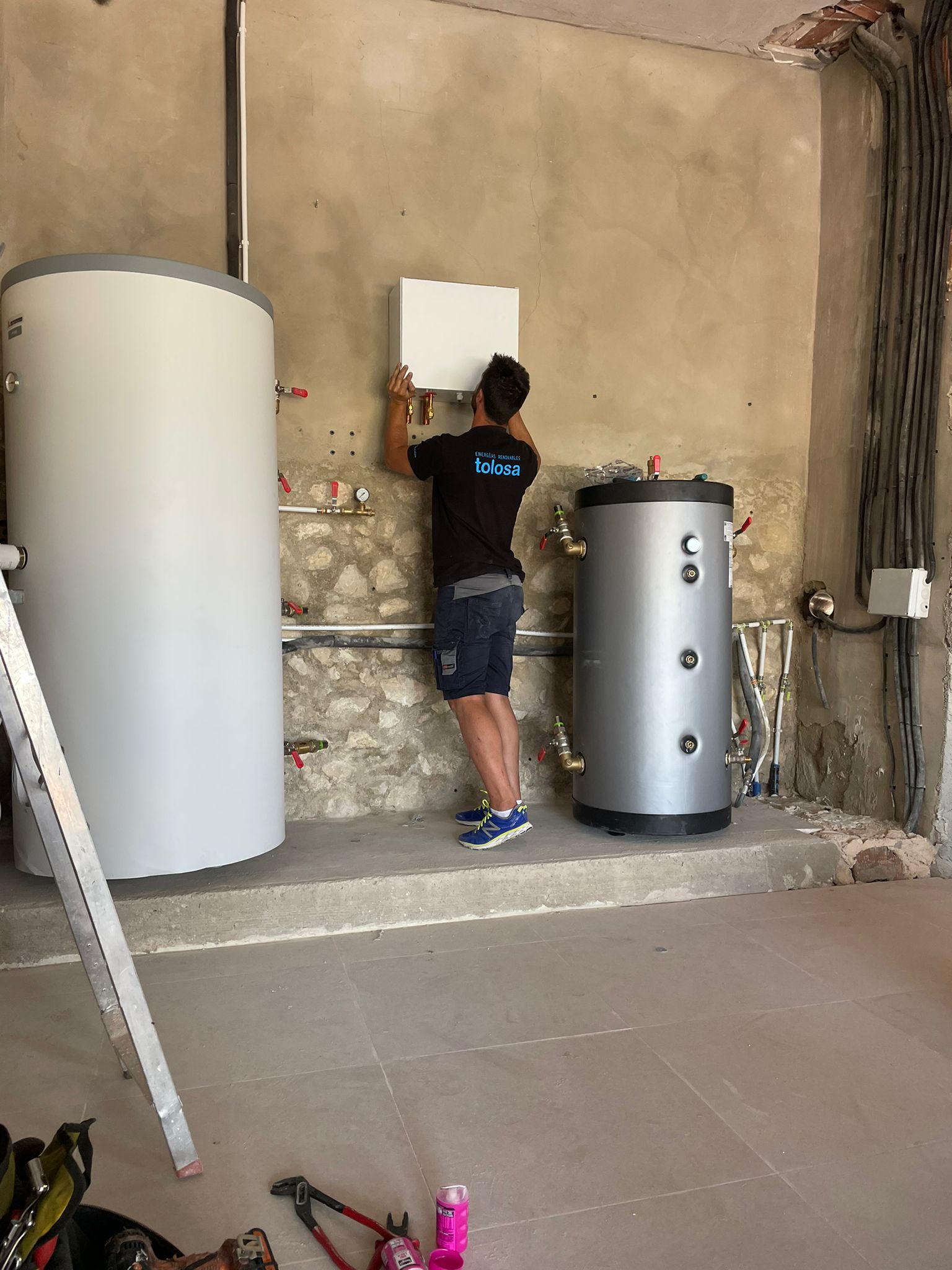 Se realiza estudio para la instalación de aerotermia, se procede a desmontar caldera, depósito de gasoil y se inicia la instalación equipos de aerotermia.