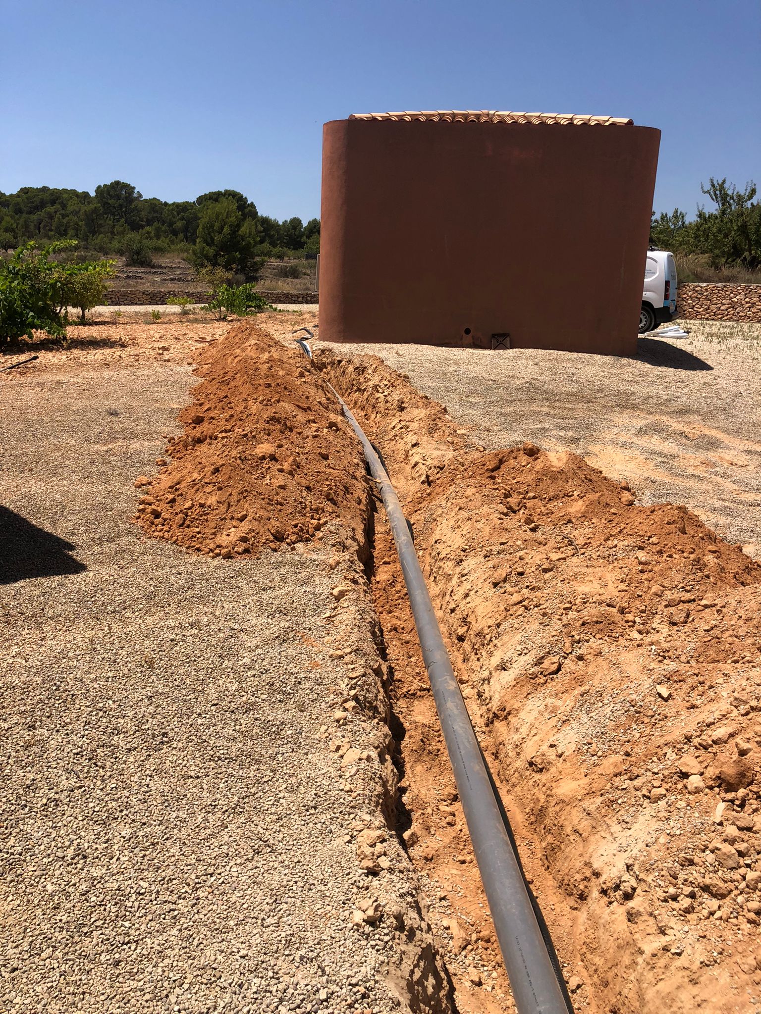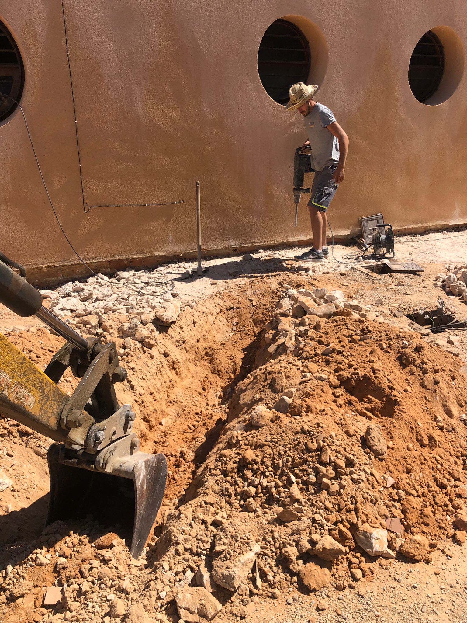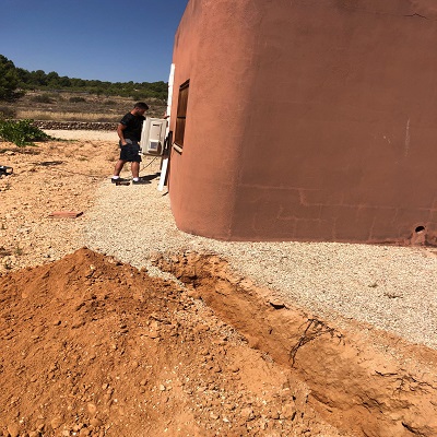 La única alternativa estaba en la casa utilizada como trastero la cual estaba a 25ml. de distancia de la casa principal, procedimos a realizar una zanga de 40cm. de profundidad para poder pasar las instalaciones hasta la ubicación de la unidad exterior.